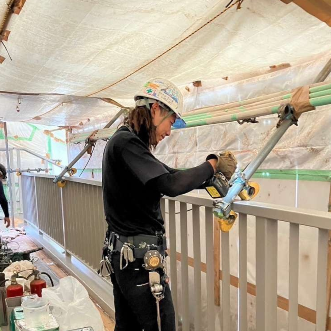 2020年入社の瀬島さんは、趣味のサーフィンで出会った先輩社員の誘いをきっかけに、未経験で建設業界へ。現在は現場作業に加え、工程管理表の作成やお客様との打ち合わせなど、現場管理も担当しています。